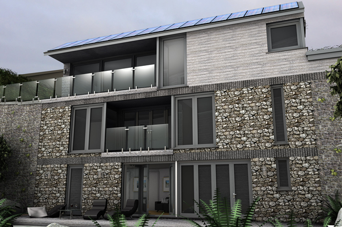 Planning has been obtained for a contemporary subterranean house in East Looe with far reaching coastal views.