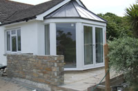 The extension to the side and rear provides a lounge with part glazed roof overlooking the garden a new entrance with level access and an additional bedroom.