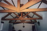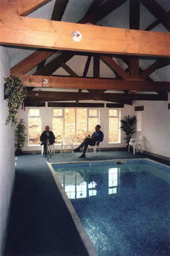 To provide an aesthetic and traditionally pleasing interior it was decided to build trusses that would be exposed to the pool area and incorporate a fibre optic lighting system.